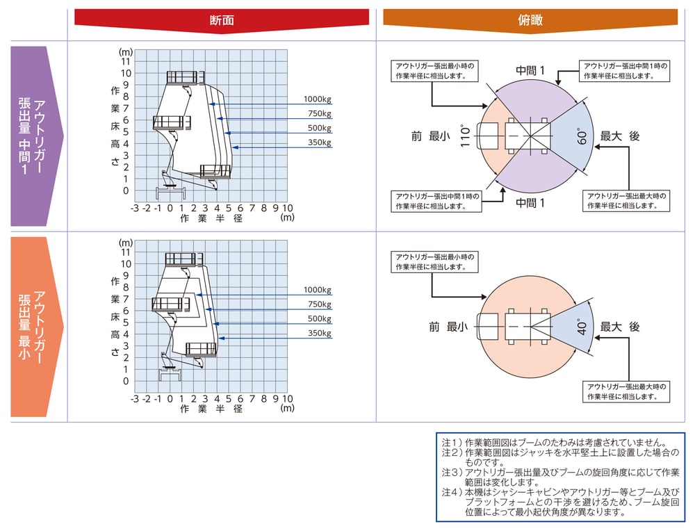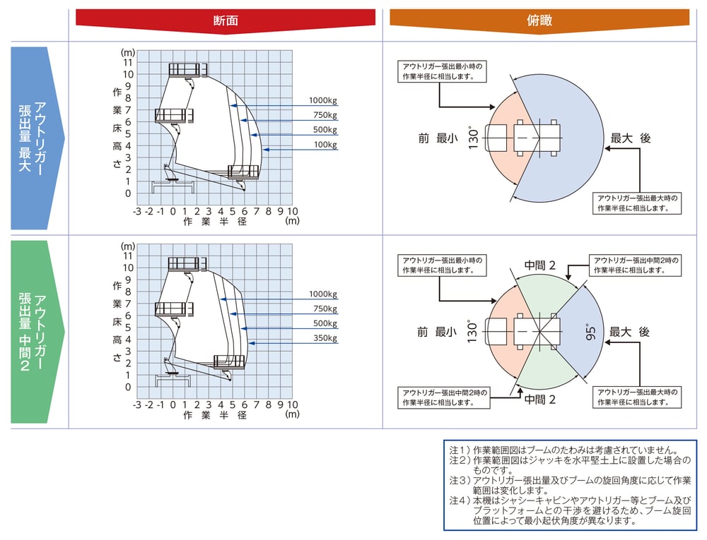 ・作業床の最大高さが10m以上のものは、高所作業車運転のための「技能講習修了者」。 - 強風(10分間の平均風速10m/s以上)、大雨(1回の降雨量50mm以上)、大雪(1回の降雪量250mm以上)等、悪天候下での、2m以上の高所作業は法令により禁止されています。